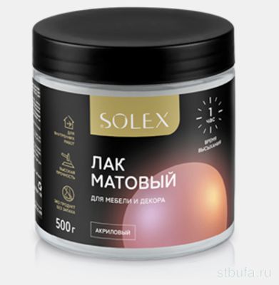 ЛАК матовый SOLEX для мебели и декора 0,25кг
