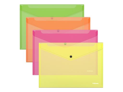 Папка-конверт на кнопке пластиковая ErichKrause® Fizzy Neon, A4, полупрозрачный