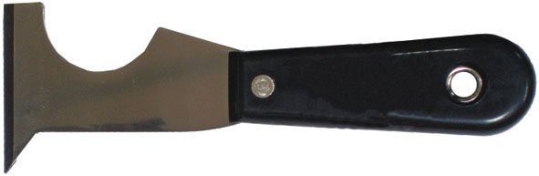 Описание товара: Полотно шпателя из нержавеющей стали с пластиковой рукояткой. Специальная форма шпателя позволяет защищать трубы и повердности от краски и т.д.