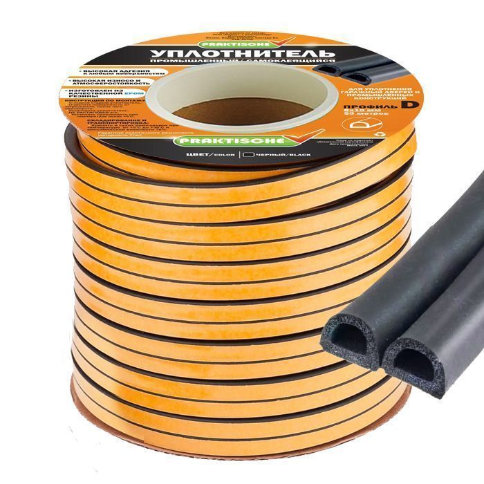 Читать все статьиУплотнитель самоклеящийся промышленный `PRAKTISCHE` D 10ммх12мм 50 м (чер)
